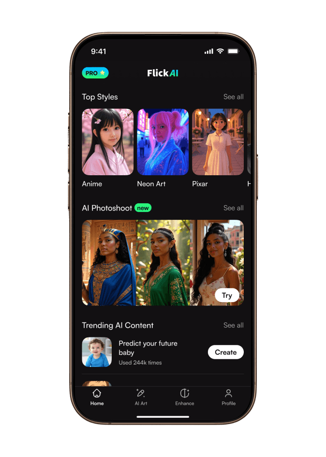 Quick access to AI art creation or photo editing workflows.